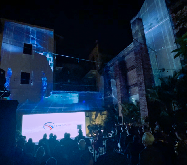 For the opening of Enfragen’s new offices in Panama City on February 29, 2024, I created and delivered a bespoke architectural projection mapping on the historic façade of a 17th-century colonial hotel in the Casco Antiguo—Hotel La Compañía. I served as both artistic lead and technical director, designing an exclusive visual narrative paired with commissioned original music, and executing the show with two Epson 20,000-lumen UHD laser projectors to bring the centuries-old architecture to life with precision, depth, and atmosphere.