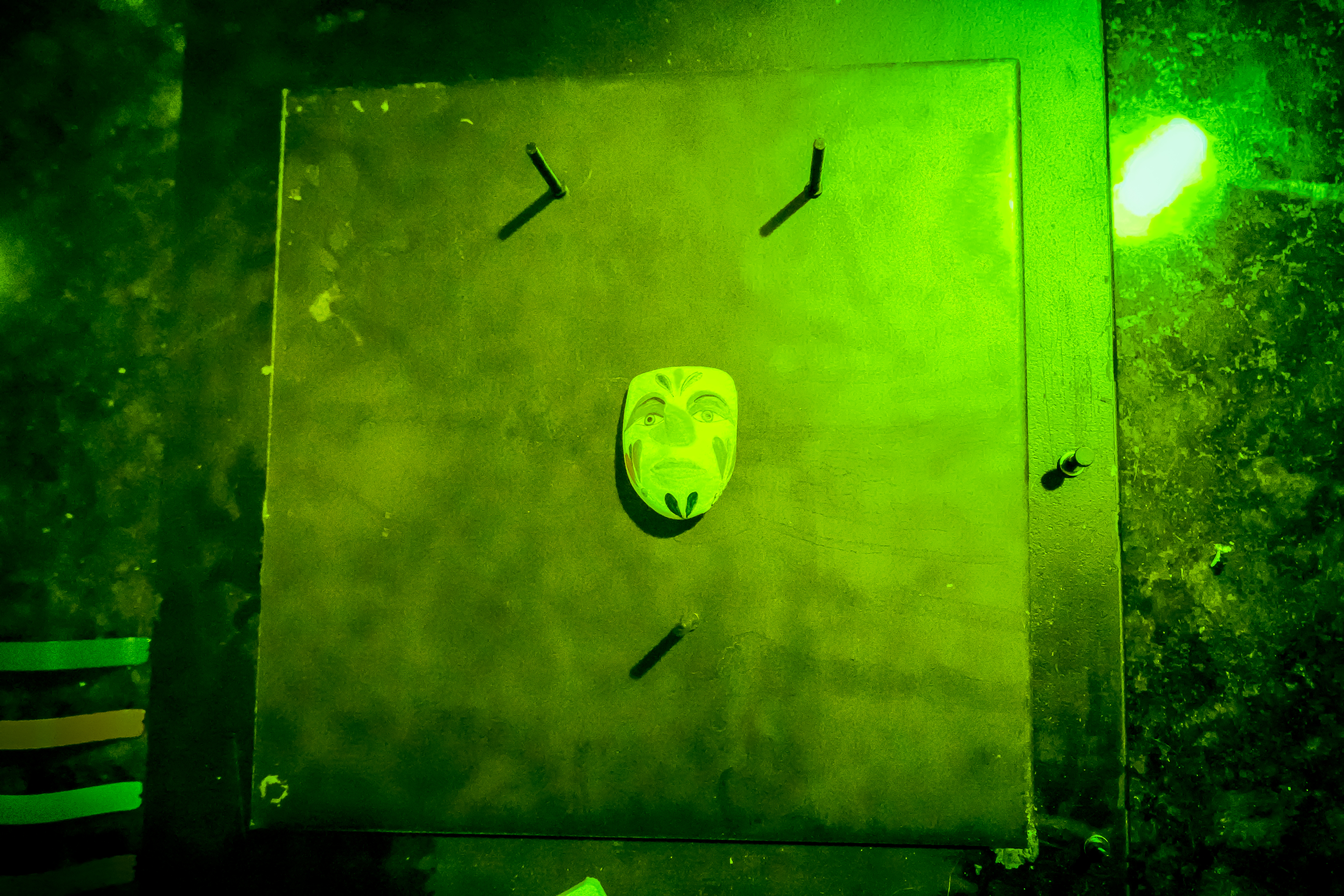 In my artistic exploration of holography, I chose to work through two distinct creative processes. The first begins with a physical subject: a handcrafted carnival mask made by an artisan from Otavalo, Ecuador, drawing from masks traditionally used in local festivities and rituals.