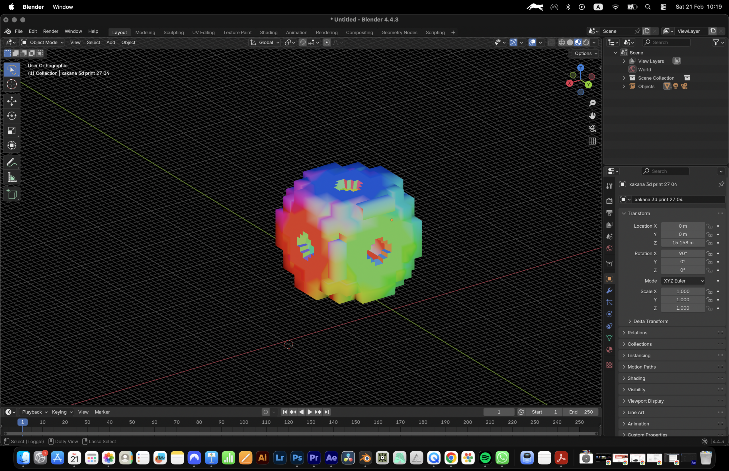 This path—concept → digital geometry → physical artifact → light field—lets me test how ancestral symbolic systems can be re-encoded through contemporary imaging and fabrication, and how meaning changes when a form is carried from flat icon to object, and finally to holographic light.